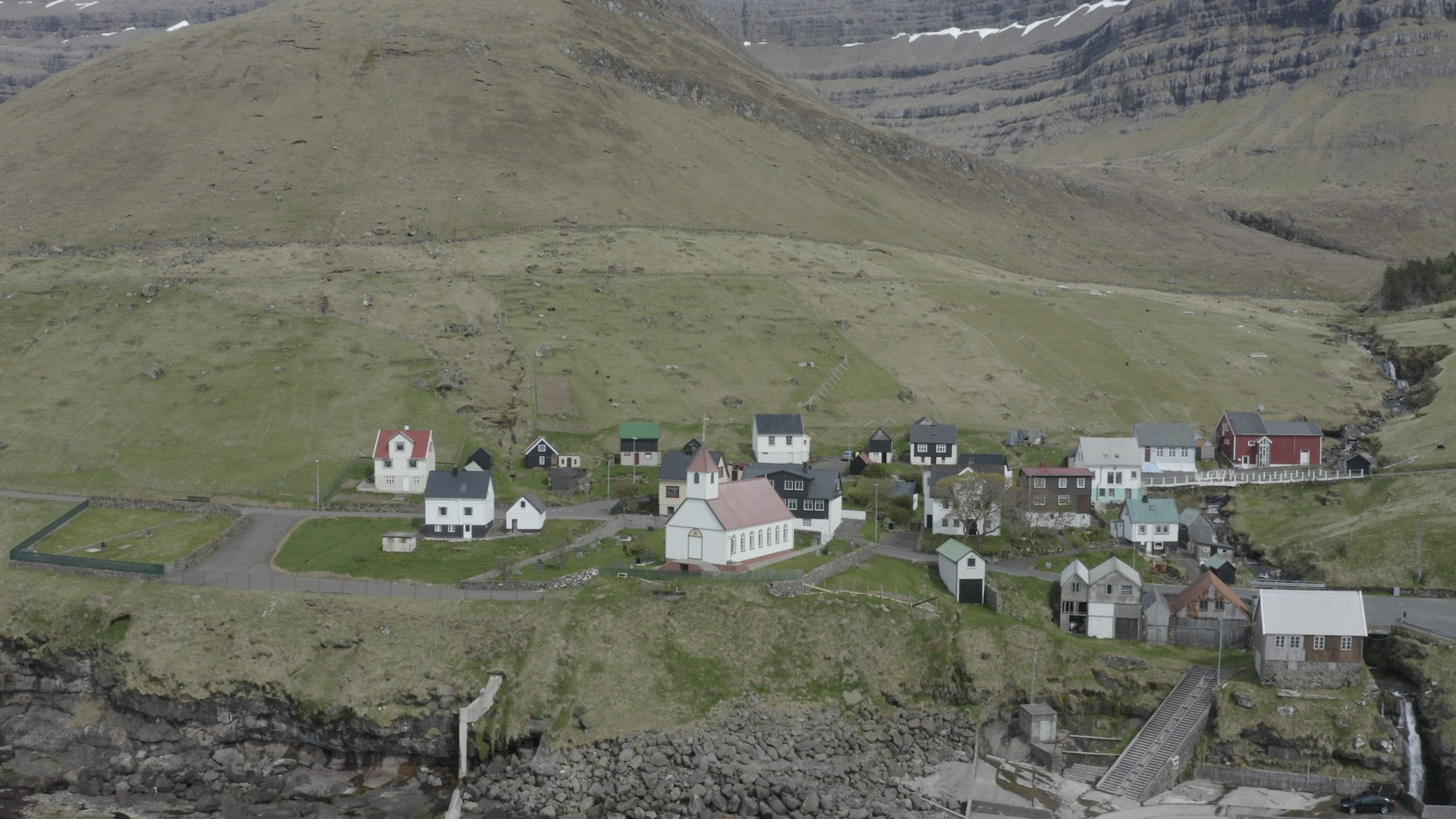 A third settlement, Skarð, was the site of a fishing accident on Christmas Eve, 1913 which killed seven men (all the male population except a 14-year-old and a 70-year-old). The women decided to move to Haraldssund, and the area is now deserted.