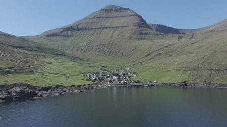 To the west of the village rises the highest mountain in the Faroe Islands, Slættaratindur (880m), however, the summit itself is not visible from the village.