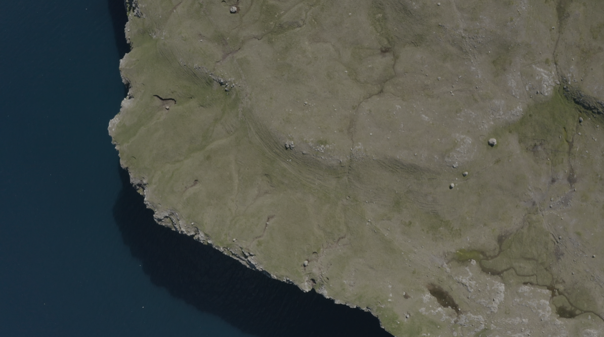 The southern coast contains two capes, each with a lighthouse (Øknastangi on the south-east, Borðan on the south).