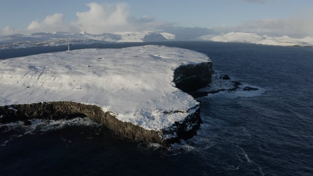 The southern coast contains two capes, each with a lighthouse (Øknastangi on the south-east, Borðan on the south).
