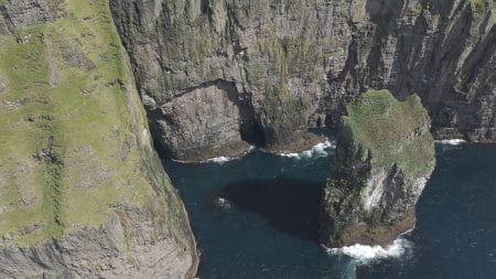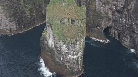 Legend has it, that Trøllkonufingur is a finger of a witch that came to throw the Faroe Islands to Iceland. When she came to the sea south of Vágar, the sun came up and she was turned into stone and fell into the ocean.
